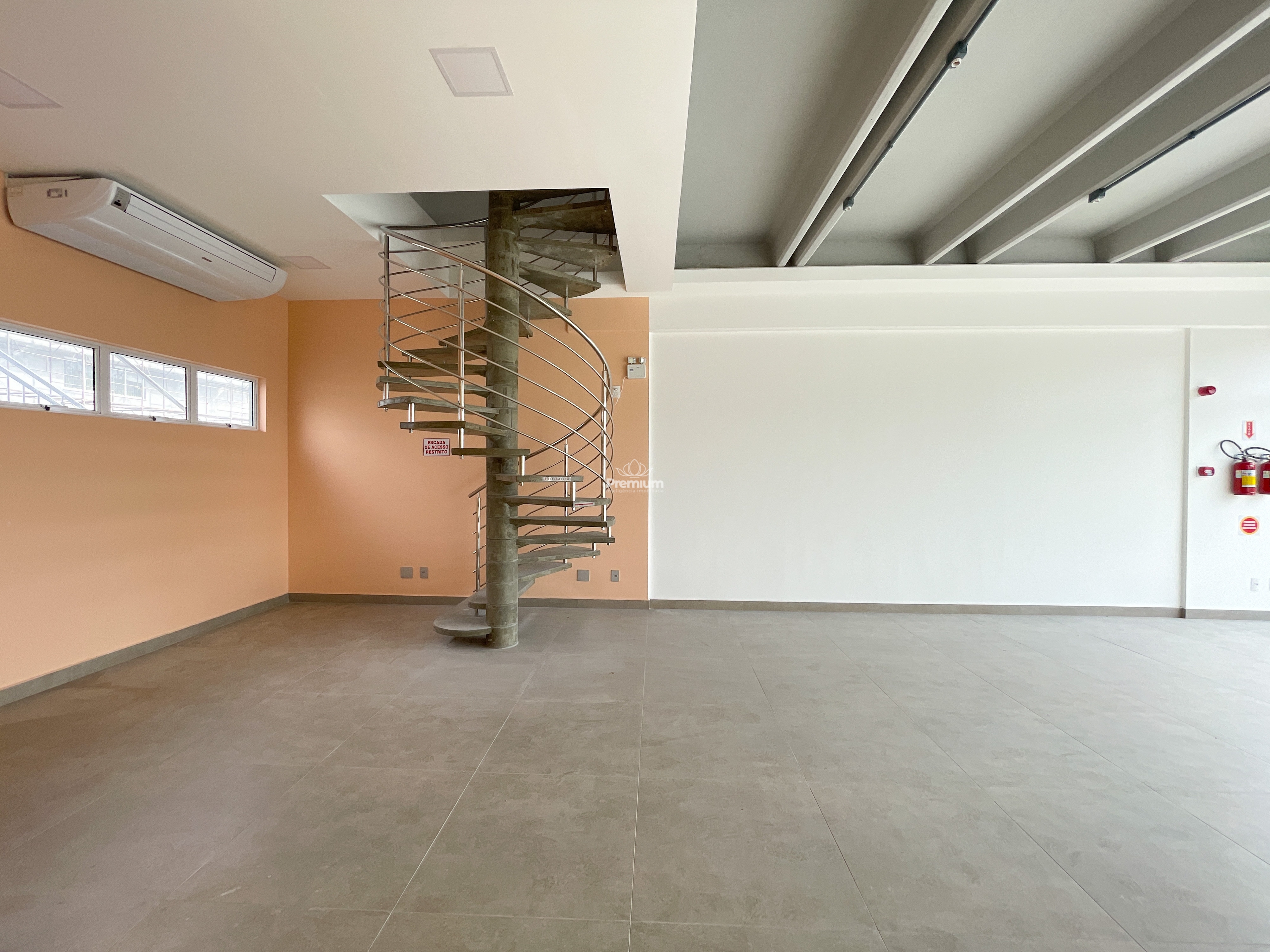 - Com área total de 154,61 m² e pé-direito alto, a sala permite diversas configurações de layout, adequando-se a diferentes tipos de negócio.